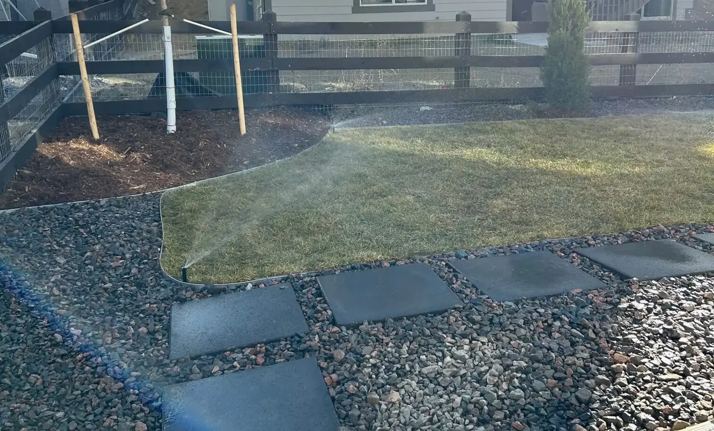 Complete whole backyard landscape construction with new sprinkler , Sod , Rock , Planting , Patio .